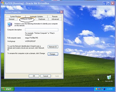 Kemudian yg terakhir kita tinggal merubah nama dan Workgroup dimana jika kita ingn merubah nama klik pada Kotak dibawah Computer Name,dan jika ingin merubah Workgroup pada bagian kotak dibawah tulisan Workgroup.
